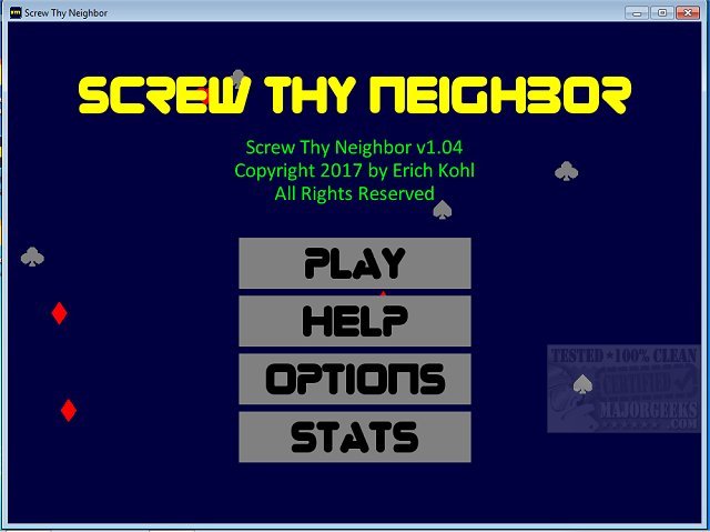 Screw Thy Neighbor comes with a clean user interface, computer opponents, custom settings, sound effects, as well as statistics tracking.