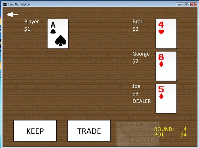 Screw Thy Neighbor is a fun but simple card game in which you need to avoid being the player with the lowest card at the end of each round.