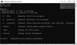 SECRET includes a built-in help function available by utilizing the following command: SECRET.exe –help.