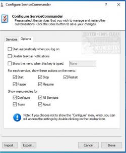 With ServiceCommander, you can easily start, stop, or restart selected services on any computer on your network, all conveniently from the Windows Taskbar.