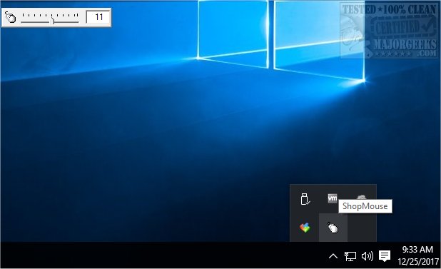 While initially designed for Photoshop users, it has many useful applications. Extract the file and create a shortcut to use it anytime. You will find a small mouse icon on your system tray. Right-click on this icon to show or hide the app, access options, properties, and more. Mouse properties is merely a shortcut to Windows mouse settings. Click on the mouse icon once, and the slider will appear. The Options section have no options. It was intended to down the road, but never happened and there's not much missing here except perhaps deciding where the slider docks.