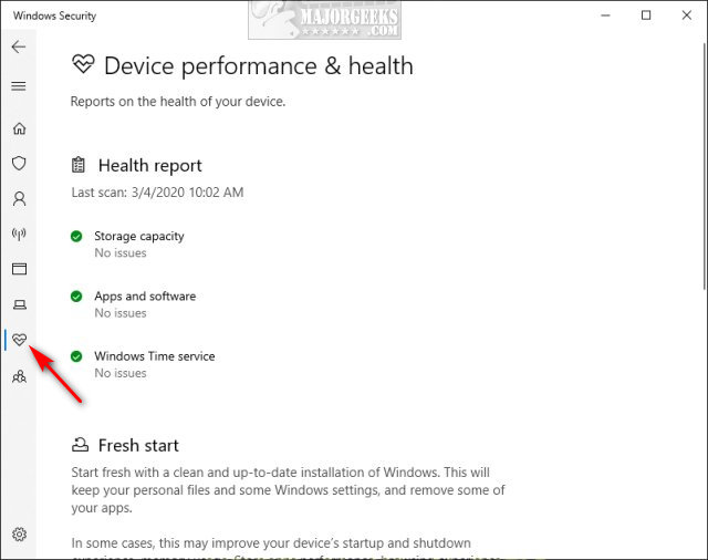 Screenshot for Show or Hide Device Performance and Health From Windows Security
