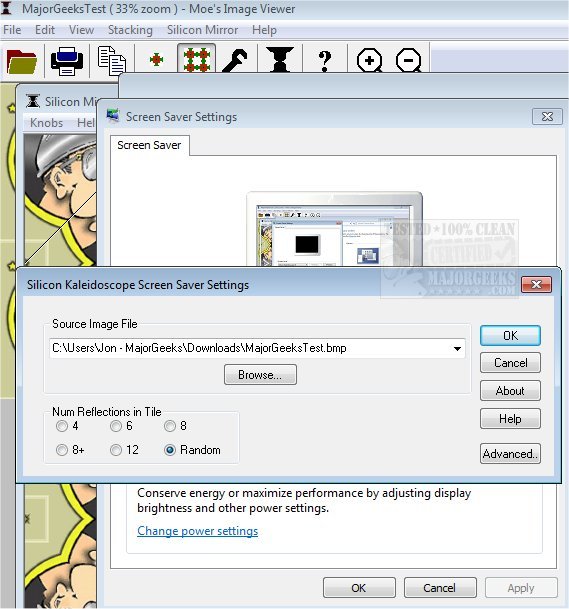 Silicon Mirror and Kaleidoscope makes creating kaleidoscope images that can be used for fun and personalized screensavers.
