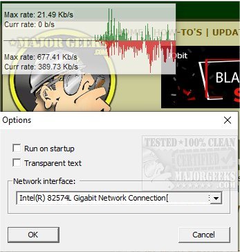 To use Simple Bandwidth Monitor, you will need to Run as administrator. All its settings are available by right-clicking on the display. The available options are Run at Startup, Transparent Text, and Network Interface selection. You can also access your network stats via the same process.