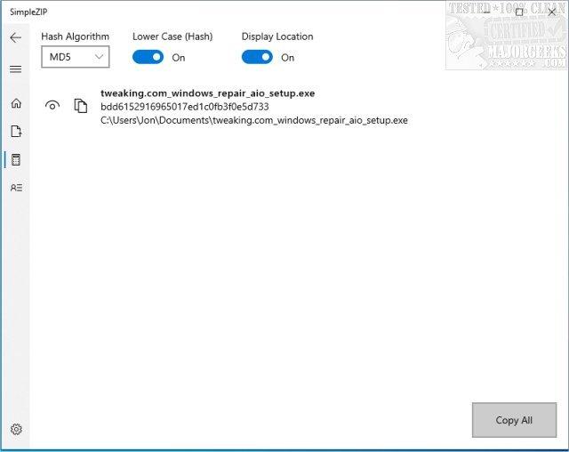 If you are in the market for a super-simple compression tool with hash value comparison capabilities, then SimpleZIP will fit the bill for sure.