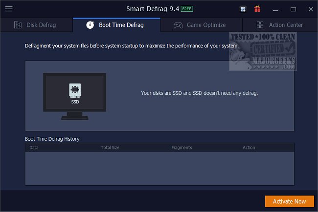 Smart Defrag Portable features SSD trimming to prolong the life and performance of your SSD drive.