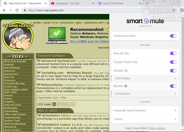 ●Hate auto-playing videos? Add those annoying sites to Smart Mute's Blacklist. Unlike the Whitelist feature, listing a website to Smart Mute's Blacklist prevents audio from being audible.