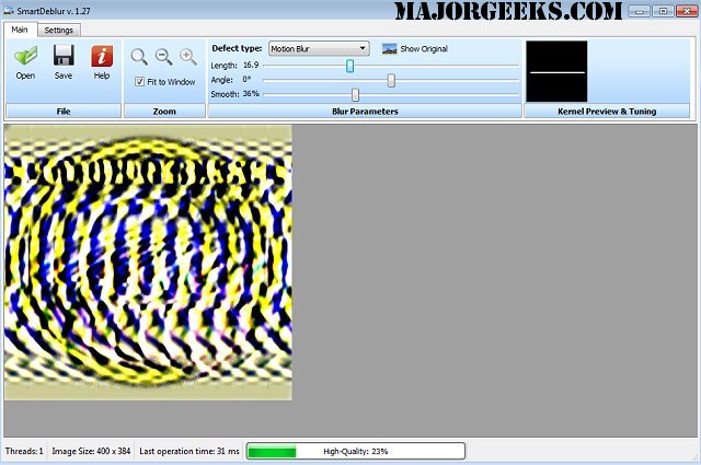It is set up in a user-friendly UI and uses the FFTW library (Fastest Fourier Transform in the West) to provide the implementation of corrections. SmartDeblur supports the correction of the following defect types; out of focus blur (with kernel deep tuning), Motion blur, and Gaussian blur (the visual effect of this blurring technique is a smooth blur resembling that of viewing the image through a translucent screen).