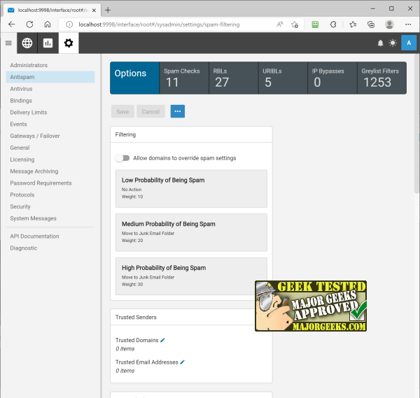 SmarterMail has a web interface that adds more modern features like tasks, messaging, and video conferencing, increasing team collaboration without plugins. Also included are built-in spam filtering, DDoS protection, and enterprise-level antivirus at no extra cost.