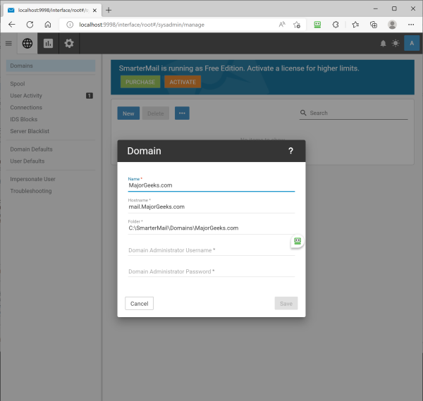 The setup was pretty straightforward - if you have set up this program before. You're going to need a domain like majorgeeks.com. (But go to Goddaddy and get you're own; we're fond of this one.
