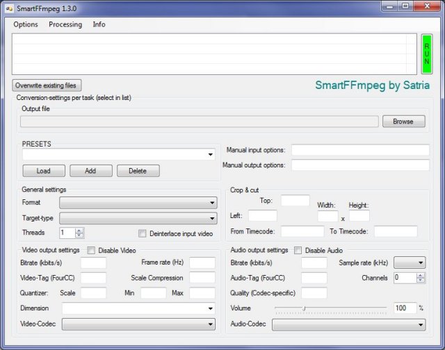 Extensibility of the conversion settings by any FFmpeg parameter into free input- and output-text fields