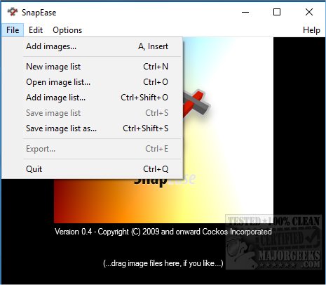 SnapEase features drag-and-drop, but you can also import your images from the file menu by simply adding your images or by creating a new image list that you can open later.