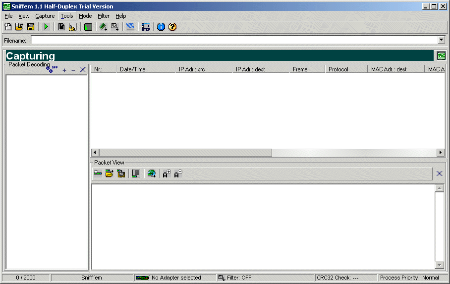 Sniff-em Packet Sniffer and Network analyzer is a new network management tool designed from the ground up with ease andfunctionality in mind. An award-winning packet sniffer and network protocol analyzer, which boasts a connection-orientedview for analyzing packets increasing effectivness. With this Sniffer, all you need to do is to set up the filter, startcapturing, and view connections, packets as well as data in realtime.