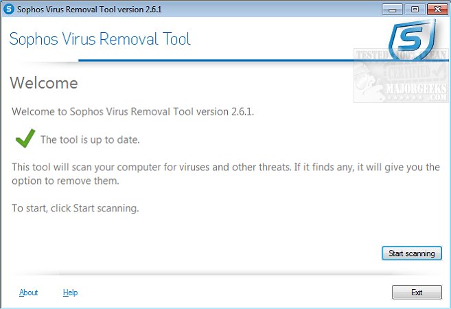 To use Sophos Virus Removal Tool, just double-click and select the Start scanning button. At this point, Sophos Virus Removal Tool will scan and remove any viruses it finds. A reboot might be required.