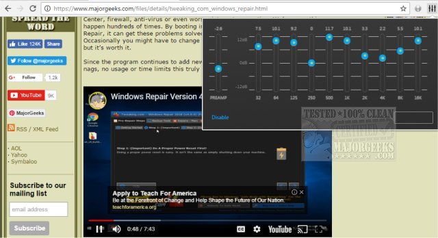 Sound Enhancement for Chrome enables you to tweak and improve sound quality while listening to media content in your browser. It gives you access to an equalizer from which you can select the perfect preset sound configuration, such as Pop, Jazz, Rock, etc. Sound Enhancement for Chrome also permits you to do it manually as well as fine-tune any of the presets to suit your preference.