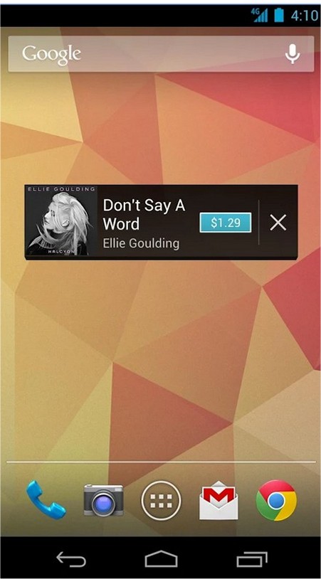 Hear a great groove playing that you do not recognize? Sound Search for Google Play will identify it for you and then allow you to purchase it straight from your phone.