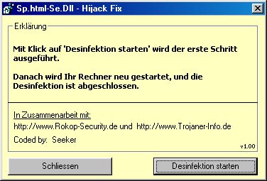 Tool for the Sp.html-Se.dll hijack if usual spyware removal tools fail.