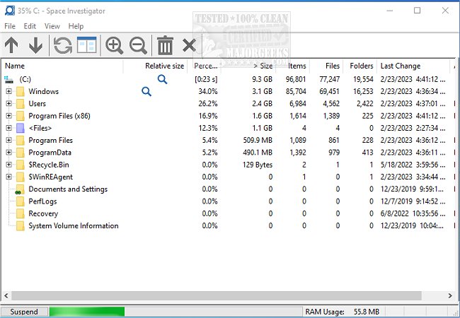 Space Investigator is a modified version of the popular program WinDirStat to allow for integration with another utility from this author. It is designed to make analyzing file and folder sizes easy by visually presenting the information gathered, allowing you to determine which files and folders are hogging up space. If you suspect your hard drive is close to its capacity, run Space Investigator and find out which files and folders are responsible. You can then clean house and free up some needed space.