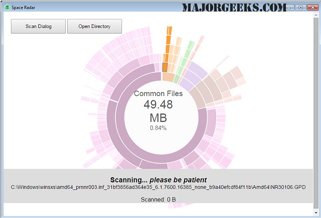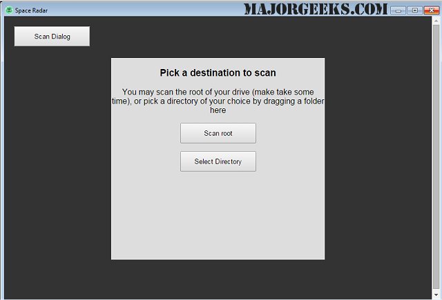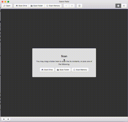 Space Radar's interface has a more Mac look and lets you scan drives, folders, or memory, or load a DU file when you start. The same four options are always found across the top as well.