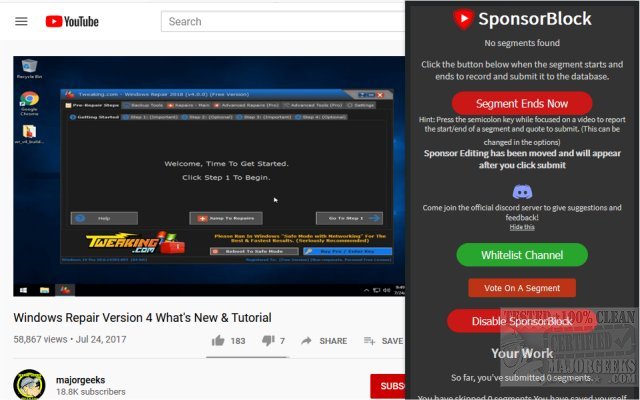SponsorBlock is a great way to cut some of the time-wasting fat off of your video watching but remember, if you frequent a channel, consider whitelisting them (like the MajorGeeks channel), so they can continue producing the content you enjoy.
