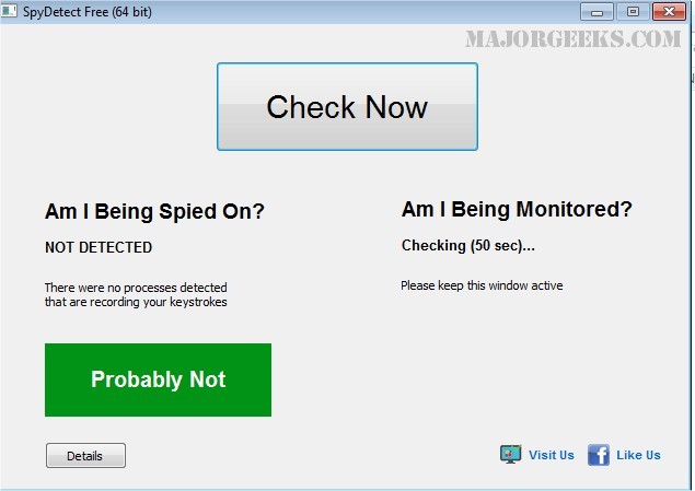 Then, it goes on to search if your machine is being monitored by checking the most common practices among monitoring software present on the market. Positive result means that there are some processes on your computer that periodically check on your windows’ captions. This does not necessarily mean that your computer is being monitored, but even if it is being monitored, then only applications and website usage can be recorded, not keystrokes or content. So, no personal information can be captured.