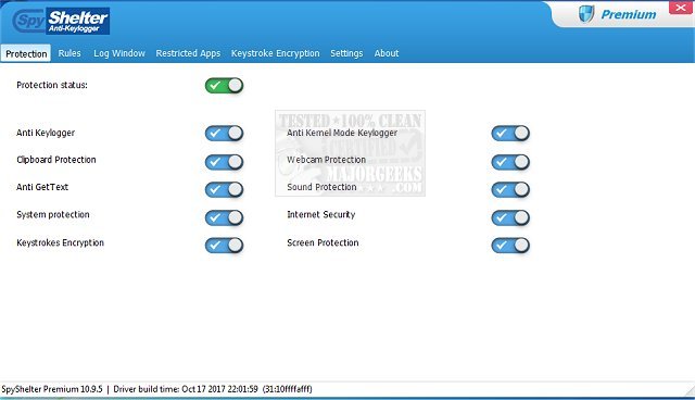 Setting up SpyShelter Anti-Keylogger Premium is simple through the uncomplicated UI that provides you with protection status options that can be switched on/off with a single click. You can restrict specific apps, exclude files/folders with questionable behavior, a log window, keystroke encryption processing, and more. The keystroke encryption module will secure your communications via Spyshelter's advanced keystroke encryption driver that will block spyware from attempting to utilize your webcam or microphone. It will also protect your passwords, chat messages, credit card numbers, banking information, and private interactions from being stolen by isolating then notifying you of any intrusions.