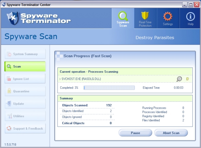 Spyware Terminator is an easy-to-use and effective spyware remover providing real-time protection against spyware, adware, keyloggers, trojan horses, browser hijackers and other malware threats.