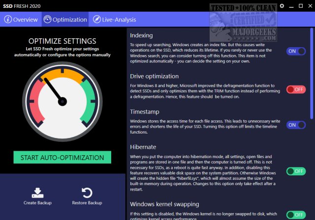 SSD Fresh provides settings, explanations, and suggestions for: