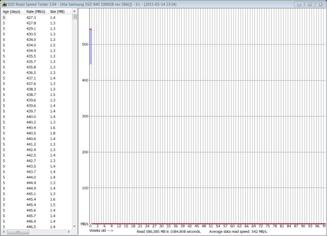 If you have a TLC NAND based SSD such as the Samsung 840, Samsung 840 EVO, SanDisk Ultra II, etc. you may want to run this tool that will read your current data to show you the real world performance when it comes to read speeds to see if you have an issue with your TLC NAND based SSD or not. Samsung recently released a firmware update to fix the issue of the 840 EVO 2.5" (not the mSATA version yet) read speed deterioration by having an algorithm in the SSD's controller that will periodically refresh old data to bring its speeds back to normal.