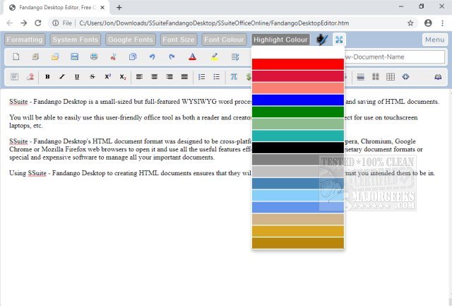 SSuite - Fandango Desktop's HTML document format was designed to be cross-platform compatible and only needs Opera, Chromium, Google Chrome, or Mozilla Firefox web browsers to open it and use all the valuable features, effectively ending the need for proprietary document formats or special and expensive software to manage all your essential documents.