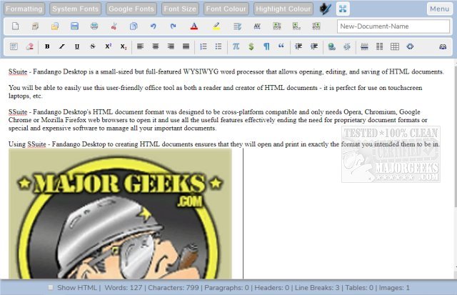 SSuite - Fandango Desktop is a small-sized but full-featured WYSIWYG word processor that allows the opening, editing, and saving of HTML documents.