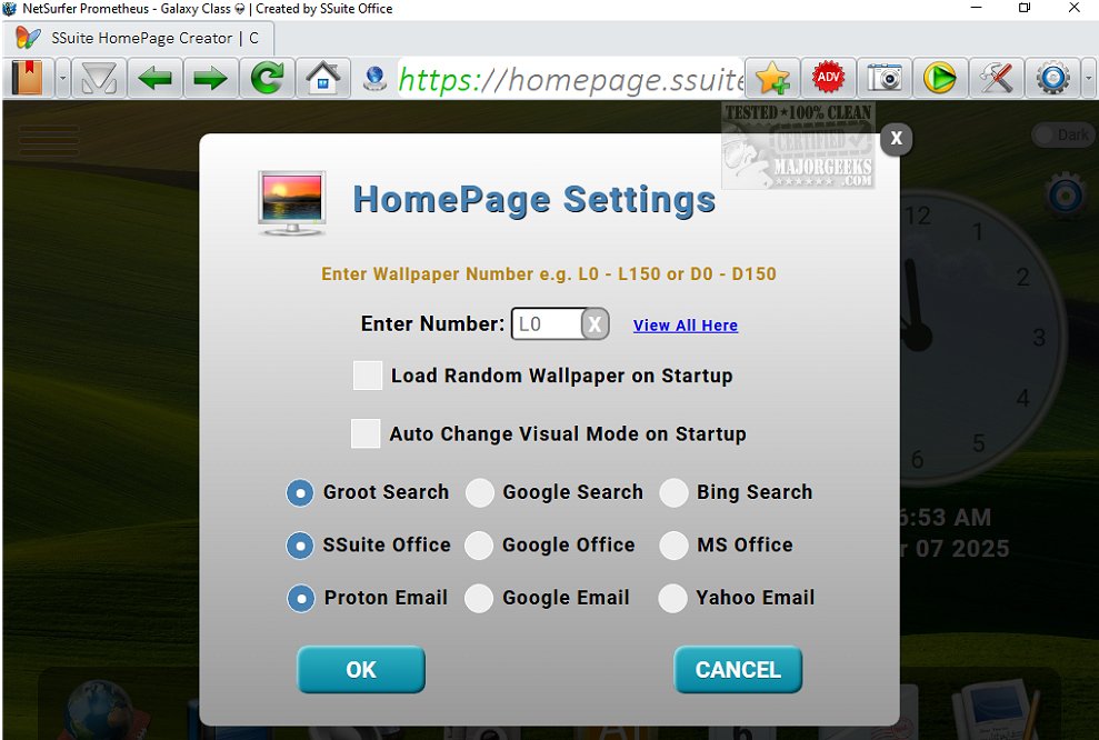 When you open SSuite NetSurfer Prometheus or a new tab, the browser directs you to your selected default homepage. This customizable homepage can be chosen from a variety of high-quality websites in the settings menu.