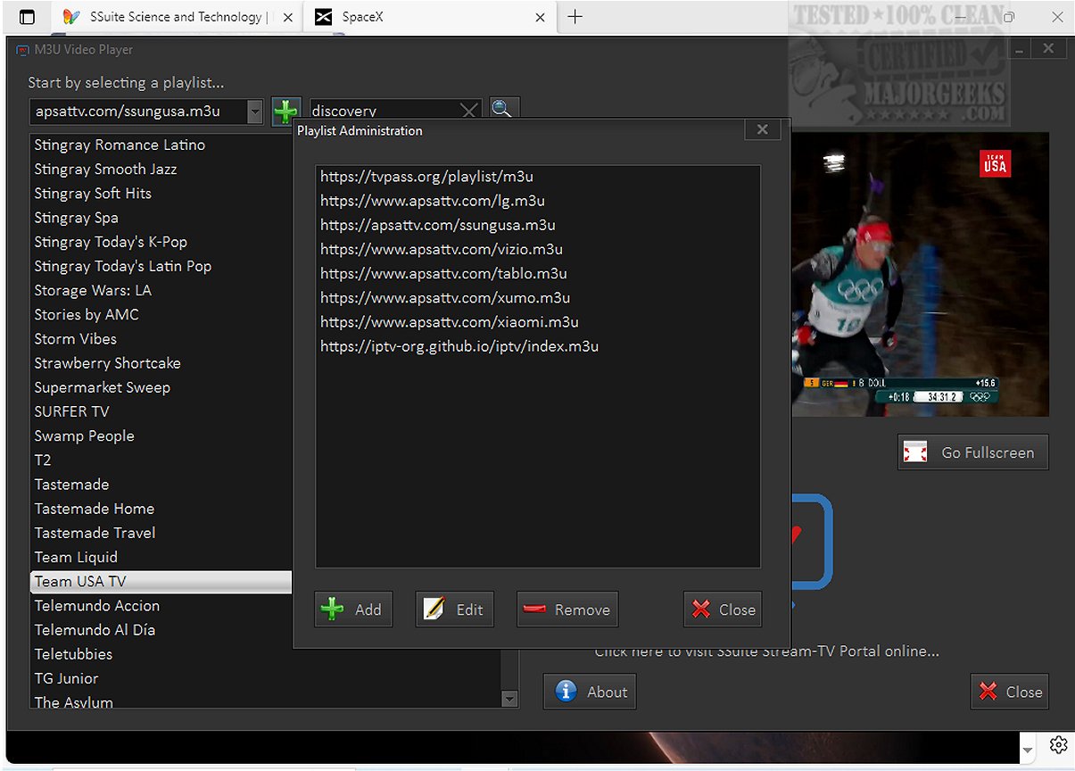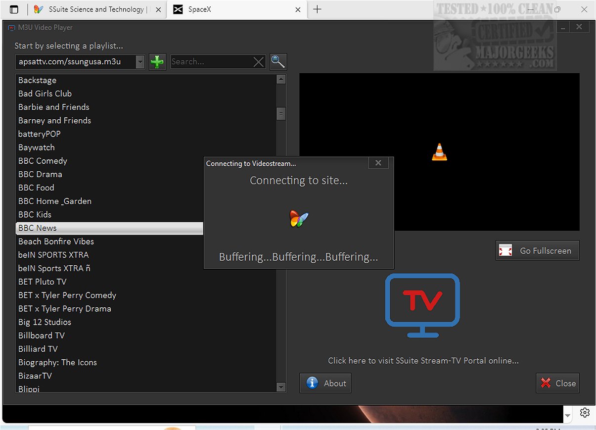 Getting started with SSuite TV-App For Windows is a breeze. Upon launching the app, you'll discover that it comes equipped with a variety of pre-defined URLs, allowing you to instantly access and enjoy a selection of TV channels right on your computer. This user-friendly setup lets you dive into your favorite programs without lengthy installation or complicated configuration. Just launch the app and start watching!