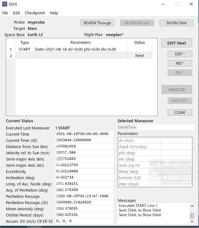 While using SSVG, you will find answers to various questions about space flights. Also, you can use SSVG as a demonstration tool for space flight.