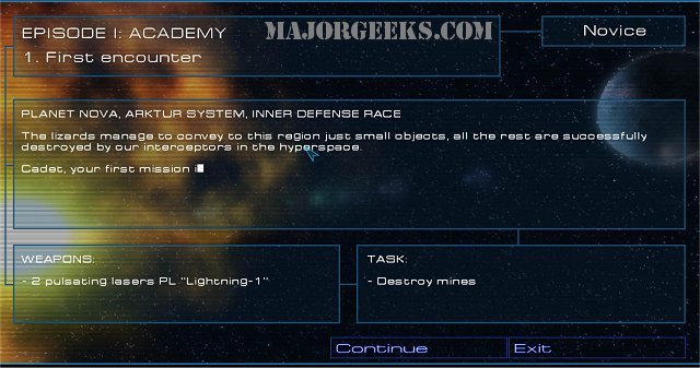 Even as a cadet in the novice setting you still have an immense responsibility - keep the advancing alien forces from attacking the human confederation's core.