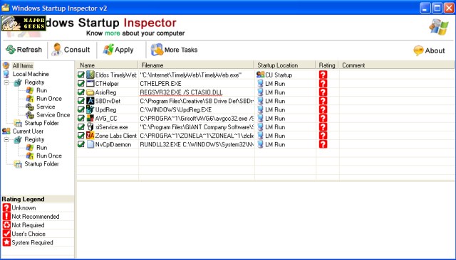 - Scans all programs that are in the Windows Startup Folder, Registry and provide you with a background information of the program.