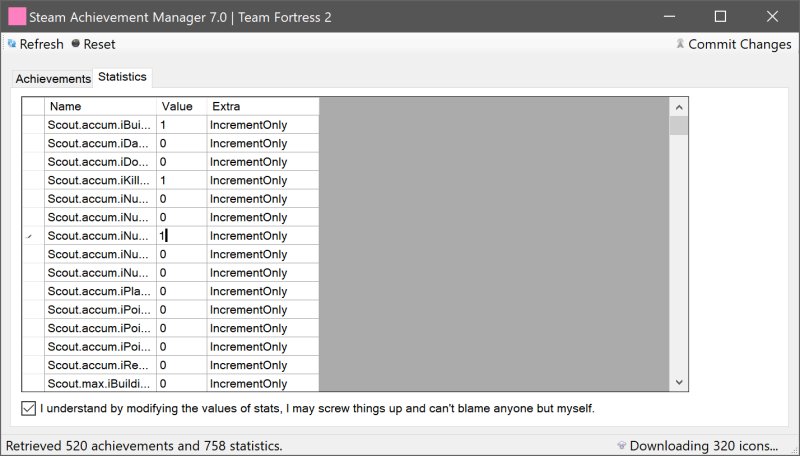 Using SAM is just as simple. After launching, it will detect your installed games. Double-click the game you want to modify, and a new window will display the list of achievements. To unlock or lock achievements, check or uncheck the corresponding boxes. Before being able to make any changes, you’ll encounter a humorous yet brutally honest disclaimer: “I understand that by modding the values of stats, I may screw things up, and I have no one to blame but myself.” It’s both funny and true. Once you’ve acknowledged this, click "Commit Changes" to save your modifications. That's it. You are on your way to the glorious feeling by passing a PITA quest!