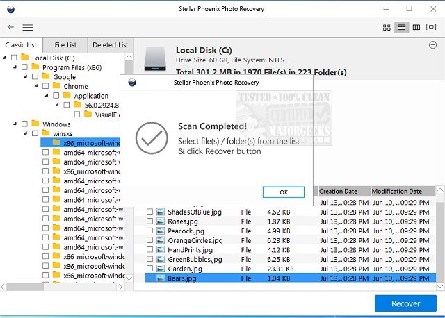 This recovery tool is set up for ease of use making quick work of lost/deleted MXF movies, HD-MOV and Adobe EPS files. Have large storage of 2TB or more? No problem, Stellar Photo Recovery can tackle it. And it also has improved support for FAT32, ExFAT and NTFS to better facilitate the recovery of deleted photos as well as reinstating your deleted pictures with their original date/time shipping, camera model/name and/or file names.