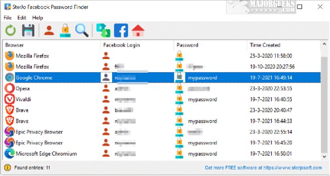 SterJo Facebook Password Finder helps you recover the password of your Facebook account saved by the most popular web browsers.