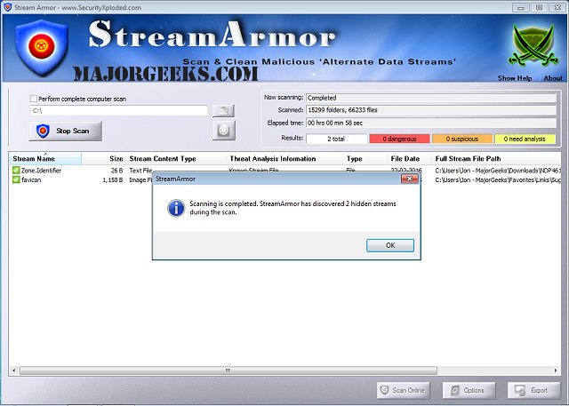 StreamArmor is the sophisticated tool to discover Hidden Alternate Data Streams (ADS) and clean them completely from your system.