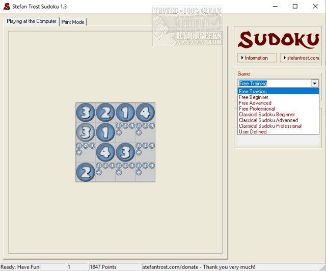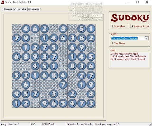 Infinite Sudokus: The program always generates new Sudokus by chance. So there is no limit to the number of games