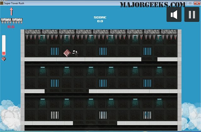 Super Tower Rush is an action-packed 'fall down' style arcade game that tasks you with avoiding descending spikes with the help of time-pausing diamonds.