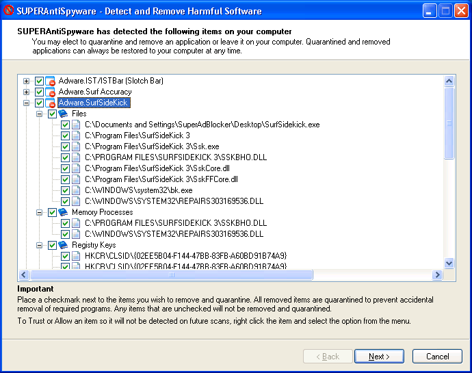 The SUPERAntiSpyware multi-dimensional scanning and process interrogation technology will detect spyware that other products miss! SUPERAntiSpyware will remove all the spyware, not just the easy ones!