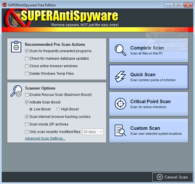 SuperAntiSpyware X Professional is one of the top tools for removing malware, viruses, and other threats.