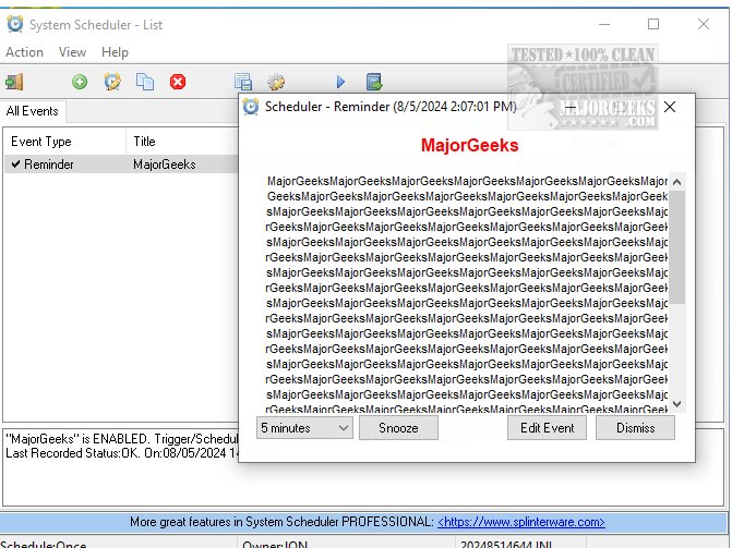 The free version of System Scheduler is fully functioning with no embedded advertising or other software. Includes basic functions to run an application, popup reminders and send keypresses. The Pro version is $30.00 and further includes: