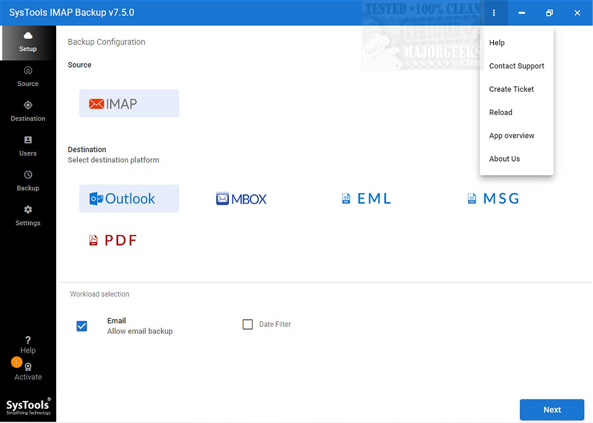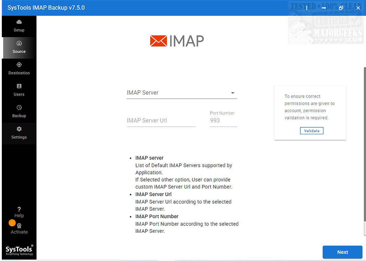 You have the flexibility to combine multiple accounts from the same IMAP host, allowing for a more streamlined and efficient backup process. SysTools IMAP Backup Tool includes an intuitive subfolder selection feature, enabling granular control over which parts of the mailbox are selected for backup. This ensures you can tailor the backup strategy to specific needs, whether itβs preserving only certain folders or performing comprehensive backups of entire mailboxes.