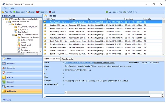 It's a freemium utility that lets you view PST files even if Outlook is nowhere on your system. No installation of Microsoft Office. No licenses. The PRO version allows you to search, print, and export mail that you need to recover. This means there's no need to buy the program unless it can actually help.