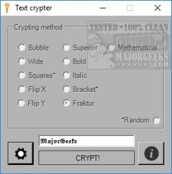Text Crypter is just a fun way to type in a different way. It's free and it's portable. I'm sure it has plenty of fun uses. We're thinking anywhere you want to stand out including social media and comment threads.