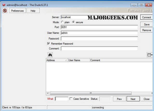 ● Supports remote Dude server and local client