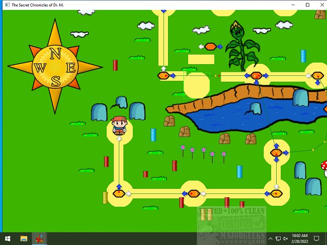 The Secret Chronicles of Dr. M. features a rich set of levels with an advanced level editor that allows you to create your levels. Each level ends with a Gate or Pipe; press up to enter the next level or the direction key into the pipe. The gameplay includes Small, Normal, Fire, Snow, Star, and Ghost Maryo. To advance to the next stage, you need to get the Mushrooms, Fireplants, and Stars but beware of the Poison Mushroom. The powerup items can be obtained by jumping into question mark boxes.